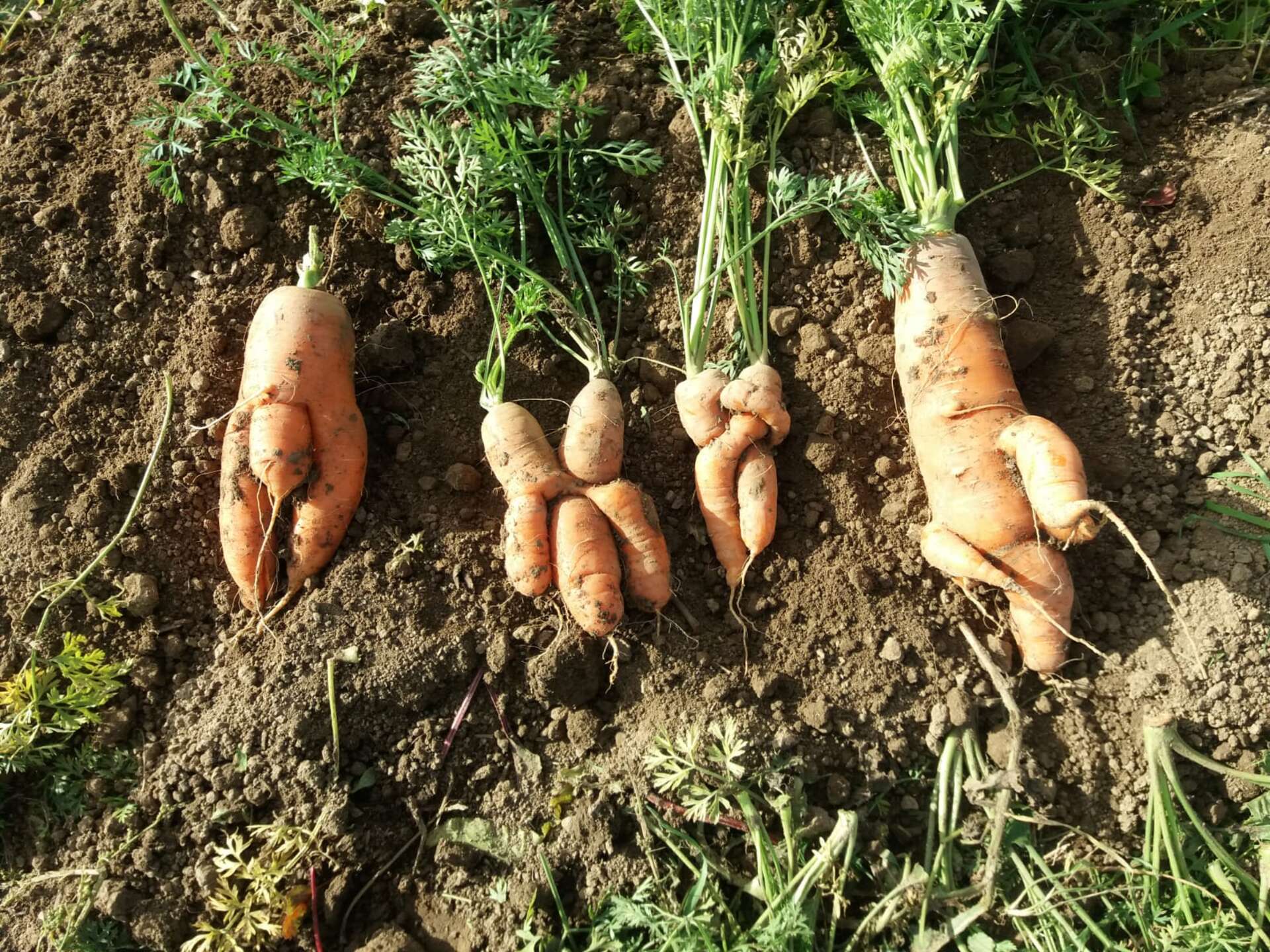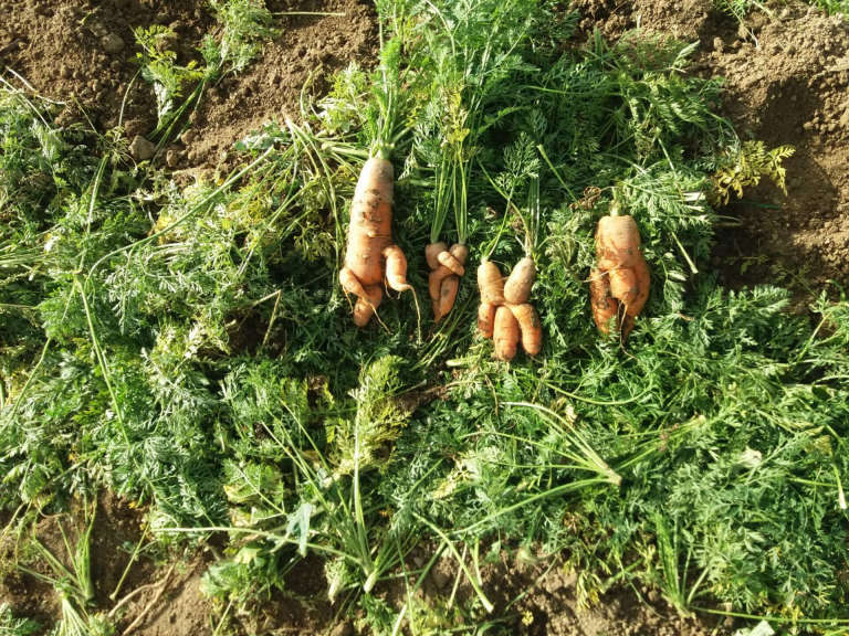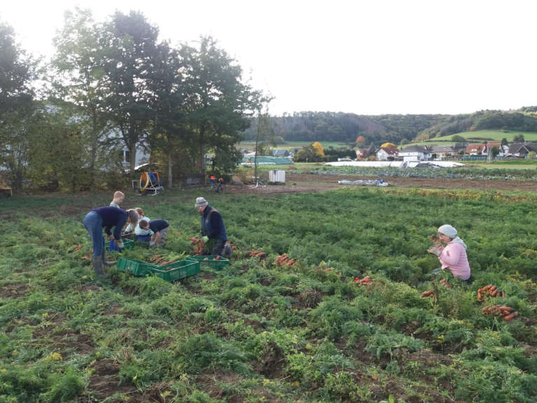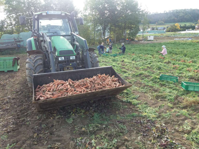 "Viele Hände, schnelles Ende": Bei der Möhrenernte beim "Wehrer Kesselgemüse" packten diesmal einige Leute mit an. Dank eines geliehenen Kartoffelernters konnten auch die Kartoffeln rechtzeitig ins Trockene gebracht werden. Bewundert wurden allseits die "krummen Möhrchen", die teils wie geheimnisvolle Alraunen anmuteten. SoLaWistas und Konsument:innen freuen sich jetzt auf leckere Suppen und Eintöpfe im Winter.